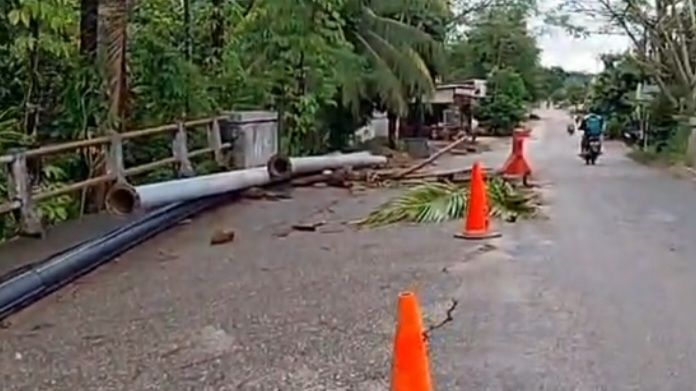 Di dalam video terlihat pangkal jembatan telah mengalami keadaan jalan yang tidak bisa dilalui kendaraan, sementara jalan hanya bisa dilalui satu sisi saja.✍